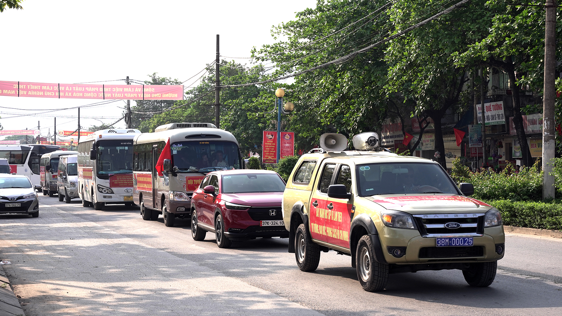 Trước Khai mạc, chiều 19/4, các đoàn tham gia Hội đã tổ chức diễu hành, biểu dương lực lượng tại Km số 0 đường Trường Sơn (thị trấn Tân Kỳ).