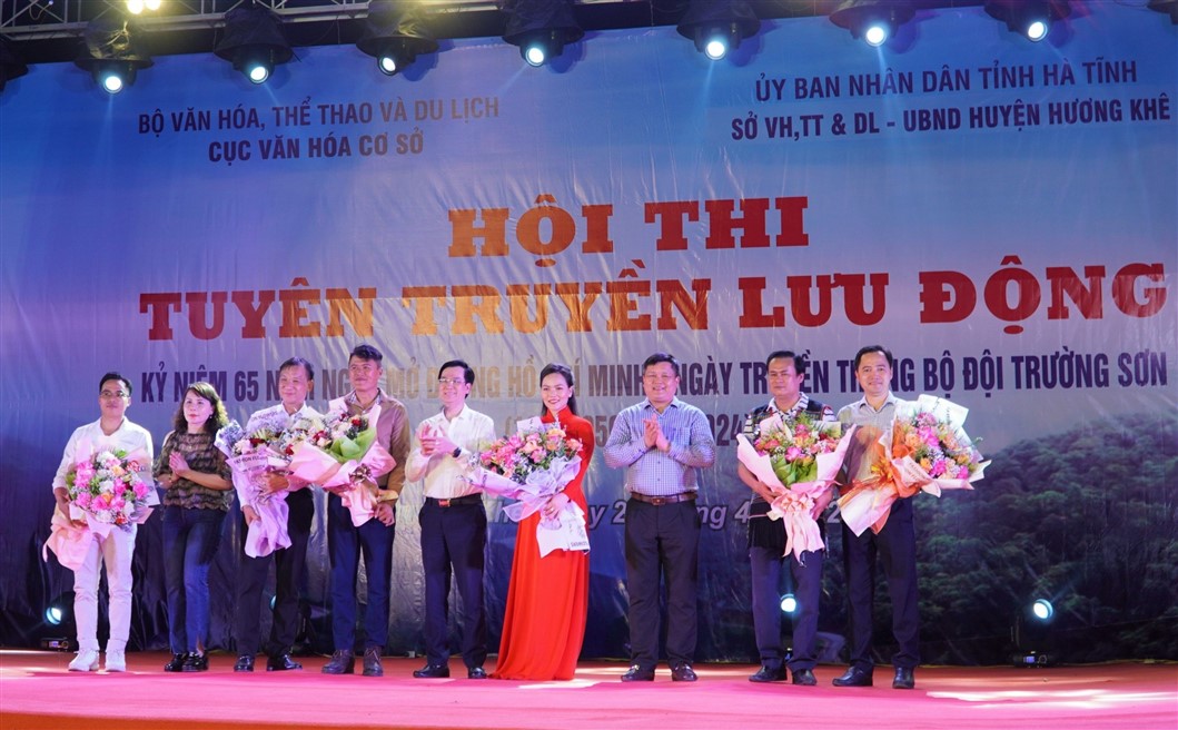 Lãnh đạo Sở VH,TT&DL Hà Tĩnh và huyện Hương Khê tặng hoa cho các Đoàn