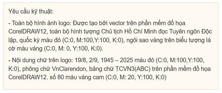 Căn cứ Quyết định số 1867/QĐ-BVHTTDL ngày 13 tháng 6 năm 2025 của Bộ trưởng Bộ Văn hóa, Thể thao và Du lịch về việc tổ chức thiết kế logo, bộ nhận diện, biểu trưng quà tặng kỷ niệm 80 năm Cách mạng tháng Tám thành công (19/8/1945-19/8/2025) và Quốc khánh nước Cộng hòa xã hội chủ nghĩa Việt Nam (2/9/1945-2/9/2025); Theo đề nghị của Cục trưởng Cục Mỹ thuật, Nhiếp ảnh và Triển lãm;… Bộ VHTTDL đã ban hành Quyết định phê duyệt mẫu biểu trưng (logo) để sử dụng chính thức trong các hoạt động tuyên truyền Kỷ niệm 80 năm Cách mạng tháng Tám thành công (19/8/1945-19/8/2025) và Quốc khánh nước Cộng hòa xã hội chủ nghĩa Việt Nam (2/9/1945-2/9/2025).